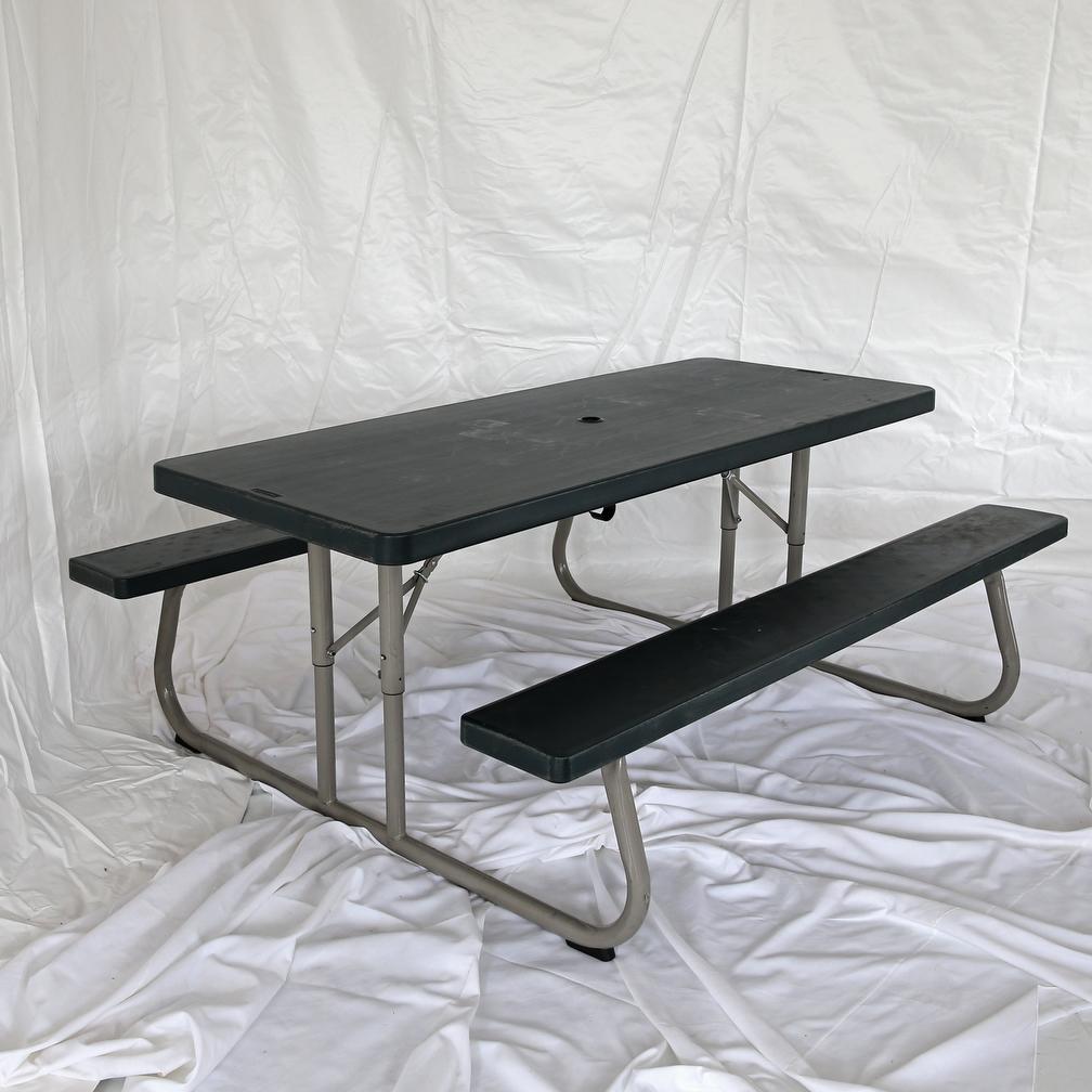 When transporting the picnic tables they collapse to 6′ x 5′. A trailer, pickup truck or box truck is needed to transport these tables.