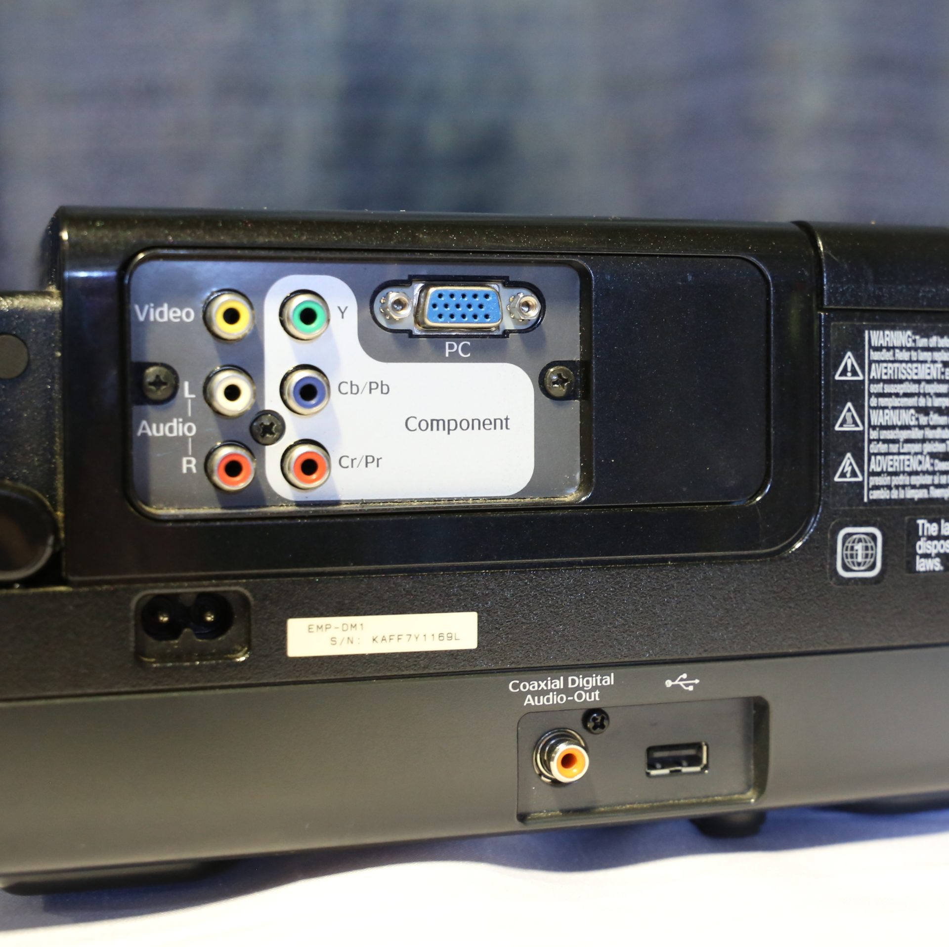 Epson MovieMate 50 is the all-in-one product with a built-in progressive scan DVD/CD player and dual Dolby® 5.1 Digital DTS® 8 W stereo speakers. It works with any blank wall or screen and projects DVD movies up to eight times larger than they would appear on a 40-inch, widescreen TV.  Be sure to test your DVD prior to showtime, DVD’s of newer technology will not play on the built-in DVD player.  Blue-ray is not compatible.