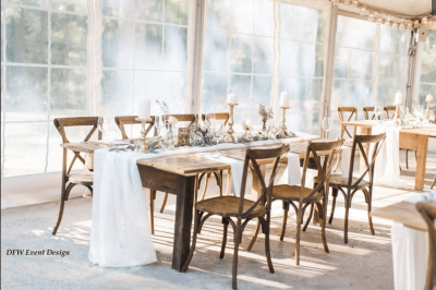 While it may sound counter-intuitive, there is nothing more sophisticated than a luxury tent. Sailcloth, completely clear, or with open sides, these sturdy structures present a blank canvas for you to showcase your day-of style while also offering high ceilings with enough space for guests to comfortably breathe. A properly sized tent allows you to build your own ballroom, layering in greenery walls, mobile bars, comfy cocktail area, and a dance floor in a manner that creates the exact experience you hope to bring to life. As a finishing touch, add in string lights or tent chandeliers that make your guest completely forget they are in your backyard.